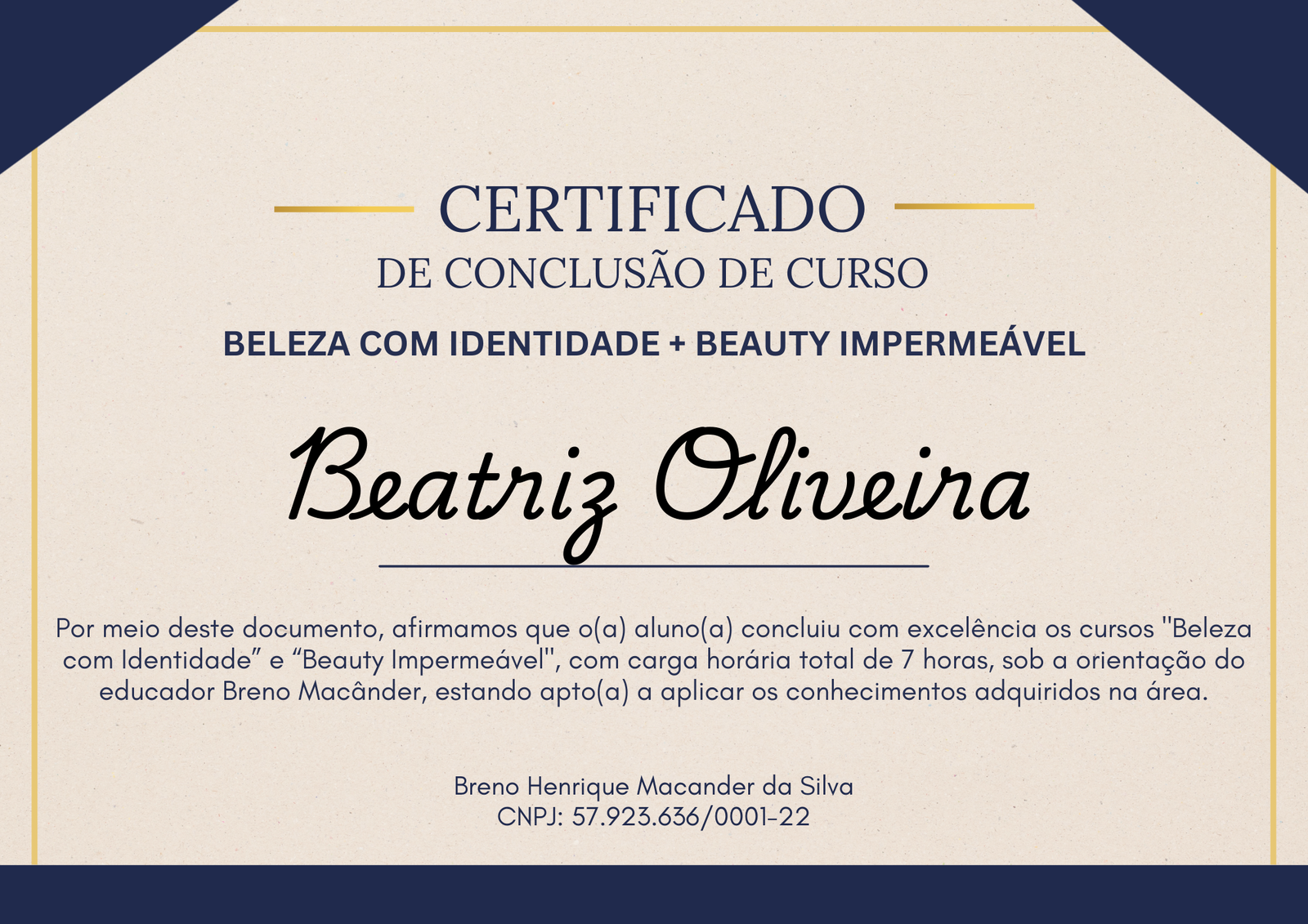 Ao final do curso, você receberá um certificado digital, reconhecendo sua participação e aprendizado com o educador Breno Macânder.